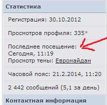 wolf Опубліковано: 21 лютого 2014 Опубліковано: 21 лютого 2014 А я последний раз на форуме был 31.01.2014. И не найду, где посмотреть, когда на форуме последний раз был пользователь. Раньше вроде в профиле были данные. смотри сюда, браза
