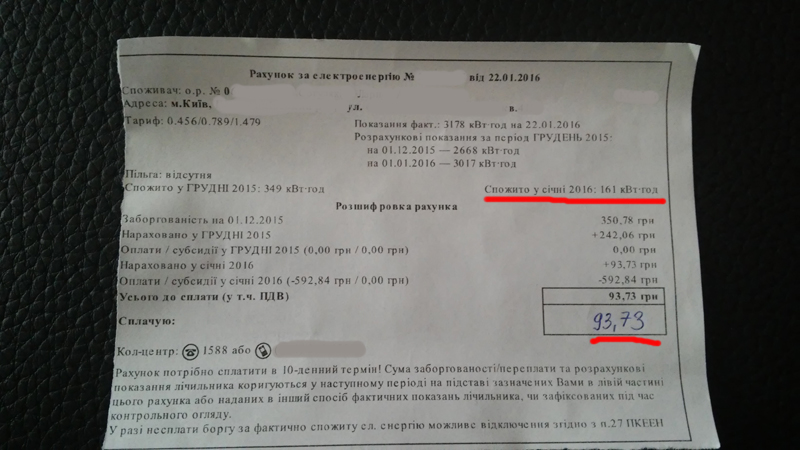 extremal Опубліковано: 12 лютого 2016 Опубліковано: 12 лютого 2016 Ну вот что нашёл на скорую руку: Почему в грудне было больше не знаю, возможно то рекомендованный платёж. Я в январе никуда в отпуск не уезжал. Из техники на 4 человека и кота на 100 кв м работает: электро плита с вытяжкой духовка/микроволновка (2 в 1), электрочайник, посудомойка каждый день, стиралка, холодильник, 2 телевизора, компьютер, увлажнитель воздуха каждую ночь естественно пылесос и иногда даже тостер. Счётчик новый (2 года отроду) Ну вот что получается по горячей воде и отоплению: трохи приврал, не 420, а 432 грн) Ну и вот ещё какие то платёжки по холодной воде и водоотводу: В принципе я доволен, терпимо. ЗЫ у меня на фабрике пару лет назад приходили сумасшедшие счета по электроэнергии. Пока меня это не задолбало и я не начал разбираться.. Оказывается, во первых у счётчика стоит индекс оборотов 1 / 6 (понижается точность) а во вторых у него от старости был САМОХОД! - Он ночью крутил при отключенном цехе почти так же как и днём. Поменяли счётчик и сразу вместо 1500 кВТ стали платить 500. Попробуйте проверить самоход - запишите вечером показатели и выключите рубильник, а утром свертесь. Ну и вообще счётчик протестить или поменять на электронный лучше - двузонный например). Да, и спасибо за инфо о таймере для розетки!