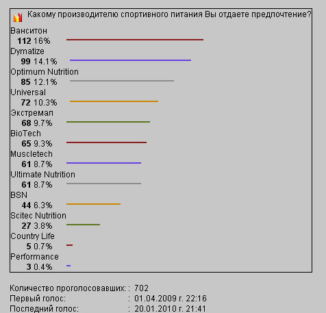 Asdf Опубликовано 20 января, 2010 Опубликовано 20 января, 2010 (изменено) Из всего спорт пита, что я ел, мне очень понравился no-xplode. Когда пил его- был очень впечатлен. Силовые подросли, энергии было как у быка. Еще на мозг действует, у меня было такое чувство что я арольд как минимум))). Вообщем мне очень нравится. Вообще bsn люблю. Протеин их syntha 6 тоже отличный. Из мусклтека проповал Нано вапор - фигня вообще, деньги на ветер. Cell Tech достаточно не плохой, только его много надо, а он недешёвый. Самый плохой протеин который я пробовал - dymatize. Это просто полное гавно, не растворяется, вкус такой что пить нереально. Может конечно мне подделку всунули, не знаю Изменено 20 января, 2010 пользователем Asdf