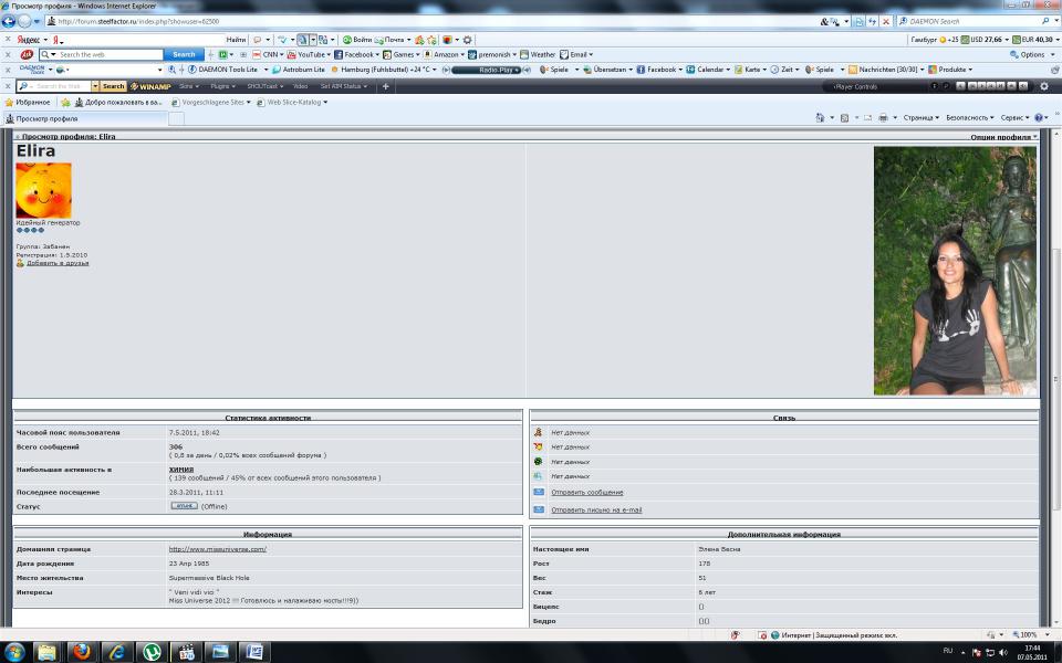 AntonK Опубликовано 7 мая, 2011 Опубликовано 7 мая, 2011 Здорова мужики! Я тут новенький на форуме, еще ничего не писал. Читаю тут ваши разборки. Знаю много чего о Элен поэтому хочу и вам поведать чтоб вы тоже знали что это за ТП. Дело в том что эта девица сидела раньше на Железном факторе под ником «ЭЛИРА» (вот кстати скрин ее акаунта) там она себя позационировала моделью, что она ею работает и будущей Мисс вселенная, сидела она там под чужими фото совершенно другой девушки (в профиле фото той красотки) и соотвественно много кто на нее клюнул, тоже ставил плюсы и.т.д, вела себя также как и здесь, все время флудила, писала чушь о которой не имеет никакого понятия, со многими сралась, так же переходила на личности , кто ей замечание делал писала что наведет порчу и.т.д Ее там долго терпели а потом забанили после того как она на модера наехала, она же зарегилась под другим акаунтам, но ее быстро вычислили и опять забанили, потом же она опять зарегилась под акаунтом в виде мужика, тоже забанили очень быстро! Так как ее посты сразу видать... Дело в том что человек о котором она писала, ну типо она для него тут зарегилась, так вот этот человек я! Я с ней переписывался, так как думал она красотка и клюнул на нее, но после того как она выложила свое настоящее фото я конечно же написал что не хочу больше с ней переписыватся ибо на этом фото она мягко говоря не красавица, фигура гавно, что человек когдато вообще спортом занимался вообще не видать, на лицо тоже «мягко говоря не очень» она же вылила на меня столько грязи это капец, я столько грязи даже и не слышал, там текст высера был огромный, а все потомучто она обламалась, хотела в Германию приехать, блин еслиб я в Аэропорту увидел бы эту «красотку» прям там бы ее и оставил... Вот Фото это она и здесь выкладывала, но потом быстро удалила так как поняла что спалилась и показала свое истиное лицо, ведь она везде зарегистрирована под чужими фото или под своими но до ужаса отфотошоплены а есть такая поговорка «пройдя все фильтры фотошопа красивой станет даже жопа» И естественно что она трепится про Мисс Юневерс и про то что она когдато была моделью это все просто треп пустой, ибо девушка с такой внешностью никогда не может там участвовать, просто не реально. Про мужиков тоже трепится, не кого у нее нет и не было никогда, так как она еще девственница, она сама мне об этом писала и я думаю теперь понятно почему она себя так ведет, ибо женщина которая никогда еще не была с мужчиной у нее явно гормональный збой так как зрелая женщина должно заниматся сексом-это физиология.... Вот и ведет себя как агресивная ТП. И мужиков ненавидит по этой же причине так как никто ее не хочет... Сидит она на всех спортивных форумах потомучто ищет спортсмена себе ибо сама она спортом вообще не занимается что и видать но эфедрин жрет все время только толку нету чето... Сам я сижу на ЖФ с 2007 года под таким же ником и на атлете с 2008 года под ником АнтонКМ, можете почитать там мои посты, человек я адекватный и все что здесь написал правда, а написал я это чтоб вы знали кто она и что это дейсвительно не нормальная личность... Ибо нормальная женщина как уже было тут сказано не будет так себя везти и вообще сидеть под чужими фото и говорить всем какая она модель и классная красотка. Это клиника... Можете мне минусовать или банить, ну типо за то что я залез не в свой монас