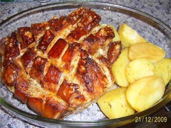 dozer Опубликовано 17 февраля, 2013 Опубликовано 17 февраля, 2013 Мясо в маринаде из черного чая. Очень сочное получается именно из-за чайного маринада. В таком маринаде можно делать любое мясо, подходит идеально к любому. Маринад: Заварить 3 столовые ложки черного гранулированного чая без добавок в 300 мл крутого кипятка. Через 10 минут процедить, чтобы не попали гранулы, одна жидкость. Добавить соль 1.5 чайные ложки, черный перец 1.5 чайные ложки, сухой укроп, чуть соевого соуса. Остудить. Мариновать мясо 40-50 минут. Запекать в предварительно нагретой до 220 градусов духовке около 40 минут.