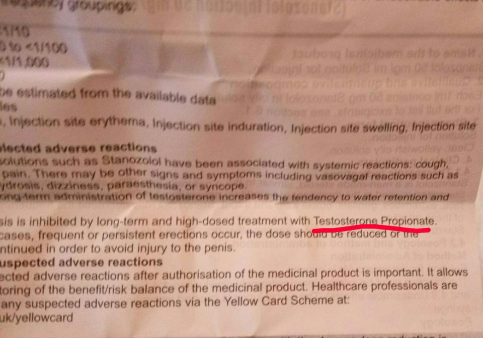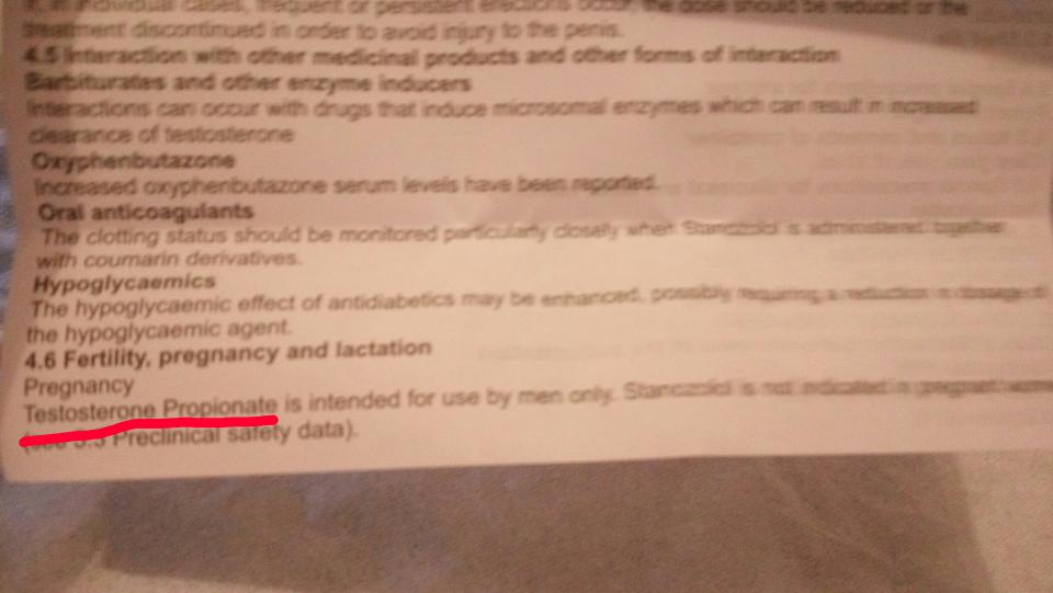 Вместо Stanozolol написано Testosteronе Propionate