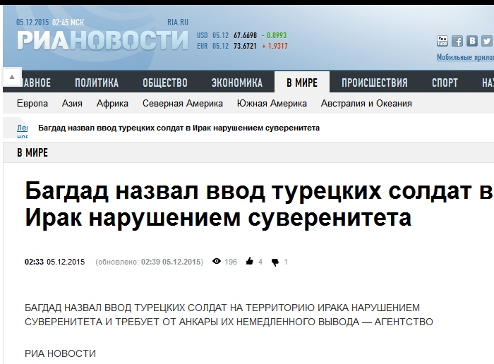 OlegRO Опубликовано 4 декабря, 2015 Опубликовано 4 декабря, 2015 Турция направила 130 военных на север Ирака Военные будут обучать бойцов иракских курдов. 130 турецких солдат отправились в окрестности города Мосул на север Ирака для обучения бойцов иракских курдов. Об этом сообщает агентство Reuters со ссылкой на источник в службе безопасности Турции. — Турецкие солдаты достигли района города Мосул. Это часть рутинных упражнений, в регион прибыл один батальон, — уточнил источник. Он также уточнил, что международная антитеррористическая коалиция была предупреждена об этом. https://www.youtube.com/watch?v=AsfOL5tJiOY