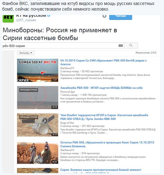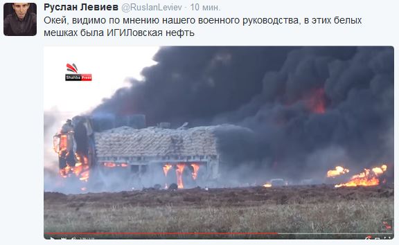 chuguniy Опубликовано 30 декабря, 2015 Опубликовано 30 декабря, 2015 МИД РФ потребовал от Турции найти и наказать туркмена, застрелившего пилота сбитого Су-24. http://24today.net/open/610695 А как они думали, что если назовешь войну учениями, то ватников не будут убивать? Поражает меня "простота" с которой пришлось встретится в первые месяцы войны -" а вы что будете в нас стрелять?". Путин - лжет! Его самолеты атакуют не «бензовозы ИГИЛ с нефтью», а мирных сирийцев. https://www.youtube.com/watch?v=ABaZHVDZalY