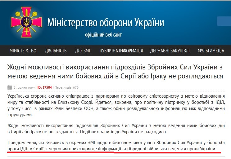 andreyyy Опубликовано 1 февраля, 2016 Опубликовано 1 февраля, 2016 Киев опроверг слухи об участии в операции в Сирии