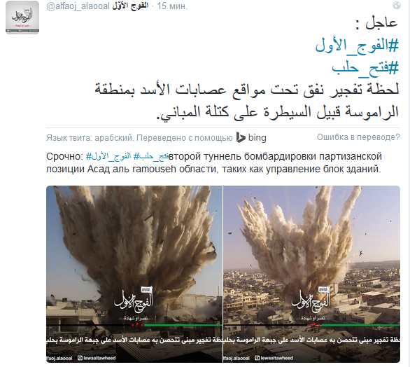 Garon Опубліковано: 2 серпня 2016 Опубліковано: 2 серпня 2016 В рамках деблокады Алеппо, в ходе битвы за Эр‑Рамуса первый полк ССА взрывает туннельную бомбу под позициями САР.