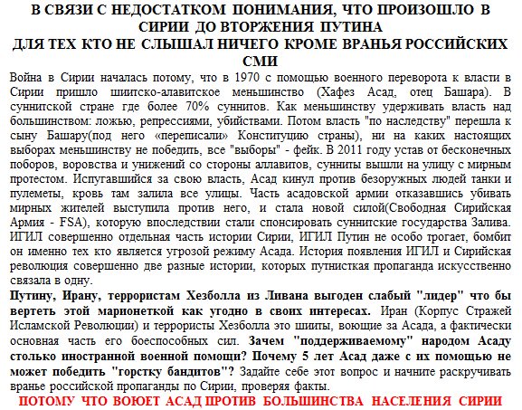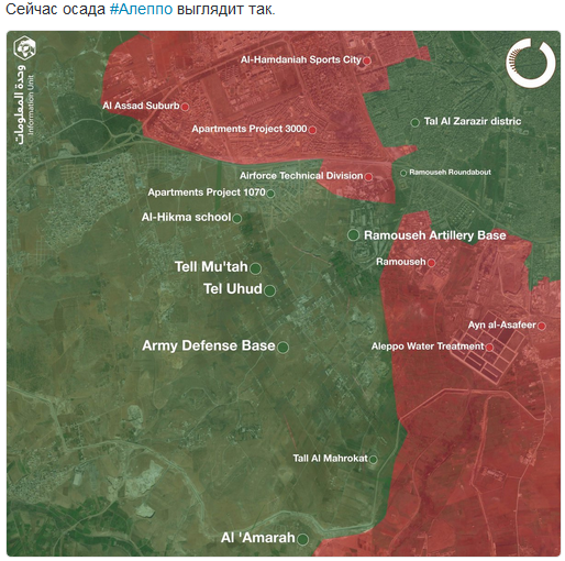 xx07xx Опубліковано: 6 серпня 2016 Опубліковано: 6 серпня 2016 Олег Пономарь 1 ч · Только сейчас можно торжественно и официально объявить, что, как мы и прогнозировали, блокада Алеппо прорвана. Оппозиционные войска, которые вели бои инсайд и аутсайд города, встретились. Асадовские войска и Хезболла понесли огромные потери за эти несколько дней "битвы всех битв". Российские друзья Асада покинули поле боя еще пару дней назад, когда поняли всю перспективу сражения. По стратегической важности и морально-психологическому значению этой победы данное событие соотвествует Сталинградской битве во WW2. Считается, что коренной перелом в войне произошел именно после Сталинграда