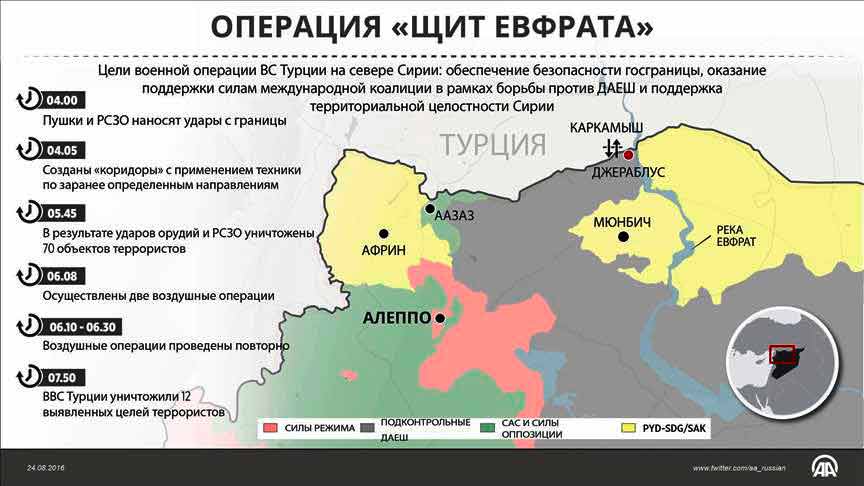 OlegRO Опубліковано: 24 серпня 2016 Опубліковано: 24 серпня 2016 Турецкое издание Yeni Safak это антинатовская пропутинская газетенка, там могут написать, что Обама съел ребенка Армия Турции с помощью авиации коалиции во главе с США начала операцию по освобождению района Джераблус в Сирии от террористов Исламского государства Турецкая армия и ВВС коалиции во главе с США около 4:00 начали военную операцию по освобождению прилегающего к сирийскому городу Алеппо региона Джераблус от террористической организации Исламское государство. В рамках ответных действий на атаки террористов, против боевиков ИГ в регионе Джераблус ведется интенсивный артиллерийский огонь. Операция турецких военных преследует цель освободить приграничные регионы от террористов и укрепить безопасность на границ, предотвратить новый поток мигрантов, обеспечить поставки населению региона гуманитарной помощи и очищение региона от террористических элементов. Reuters со ссылкой на источники в турецкой армии сообщает, что турецкий спецназ уже находится в Сирии, хотя основная фаза наземной операции пока не начиналась. В то же время авиация коалиции во главе с США уже поразила 4 цели на контролируемой ИГ территории, а турецкая артиллерия - 60 целей. http://www.bbc.com/ukrainian/rolling_news_...operation_syria