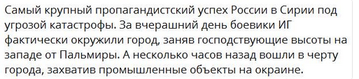 Дагот Опубликовано 11 декабря, 2016 Опубликовано 11 декабря, 2016 Игил уже в Пальмире , а рашкосми никак не смирятся ))