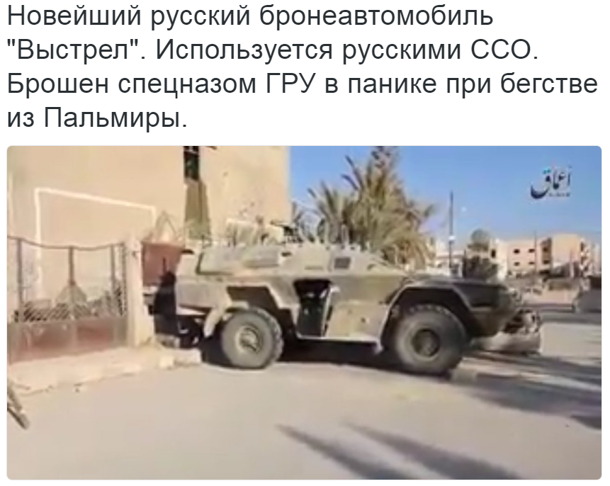 Garon Опубликовано 12 декабря, 2016 Опубликовано 12 декабря, 2016 Боевики ИГИЛ публикуют фотографии трофеев из Пальмиры, на ящиках маркировка АО «Рособоронэкспорт»