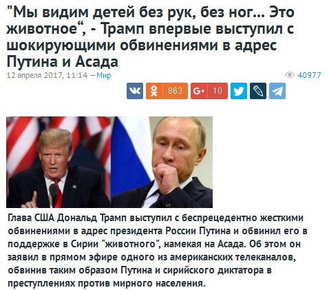 xx07xx Опубликовано 12 апреля, 2017 Опубликовано 12 апреля, 2017 Не успел путин пообещать новые газовые атаки и вот https://www.unian.ua/world/1873679-u-siriji...list-video.html хлорин кажется пишут.. Трамп сказал, что путин поддерживает в Сирии животное. https://www.unian.ua/world/1872751-putin-pi...rinu-tramp.html