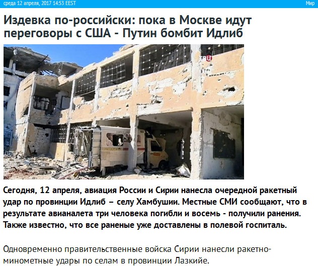 chuguniy Опубликовано 12 апреля, 2017 Опубликовано 12 апреля, 2017 Мы парни и русские также заложники какой - то непонятной игры сумасшедшего или сумасшедших... В Сирии произошла новая химическая атака, — СМИ (видео) http://politolog.net/novosti-mira/v-sirii-...taka-smi-video/ "Стратегия" этого негодяя неизменна - врать и своё делать. Президент страны-агрессора Владимир Путин заявил о подготовке «новых провокаций с химоружием» в Сирии с целью обвинения сирийских властей в его применении. Об этом он сказал на брифинге по итогам переговоров с президентом Италии Серджо Маттареллой, передает информационное агентство УНИАН. http://politolog.net/novosti-mira/opyat-na...x-atak-v-sirii/