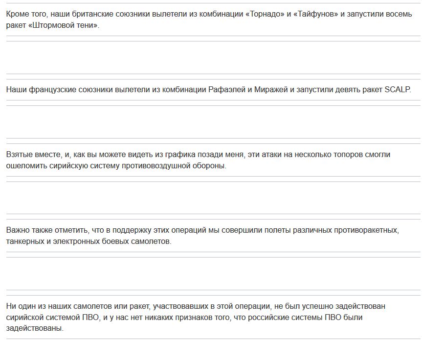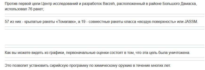 Garon Опубликовано 16 апреля, 2018 Опубликовано 16 апреля, 2018 так а куда ударили 120 крылатых ракет я так и не понял?На тот маленький заводик, который постили выше, по пр-ву химоружия? Department of Defense Press Briefing by Pentagon Chief https://www.defense.gov/News/Transcripts/Tr...on-dana-w-whit/ Показать
