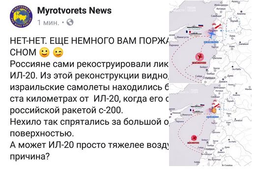 Veles Опубликовано 19 сентября, 2018 Опубликовано 19 сентября, 2018 Эта дерзкая операция войдет в историю войны в воздухе! ВВС Израиля незаметно для РФ разбомбили объекты в зоне действия новейших российских ЗРК С-400, С-300 и "Панцырь-С1", сбит российский разведчик Ил-20 - 15 российских военных уничтожено. Израиль показал низкий уровень боеспособности российских ВКС одним ударом. ПоказатьКак только доходит до реального боя, когда противник диктует инициативу и грамотно планирует свои действия, так сразу армия Путина показывает низкую боеспособность, не умение реагировать на внезапные действия.Вчера вечером Израиль осуществил одну из самых смелых и эффективных операций на территории Сирии, которая войдет в историю также как блестящий разгром советской ПВО в июне 1982 в долине Бекаа. Благодаря данным Минобороны РФ мы можем полностью реконструировать ход операции. Военно-морская база Латакия является одной из ключевых для режима Асада, для российской армии и ее союзников - террористов "Хезболлах". База охраняется в том числе российскими подразделениями, и находится под прикрытием средств ПВО ВС РФ. Вблизи Латакии находится главная база Воздушно-космических сил ВС РФ - Хмеймим, и главная военно-морская база ВМФ - Тартус. Район максимально плотно прикрыт российскими средствами ПВО и радиоэлектронной разведки, а также средствами ПВО и РЭР армии Асада, оснащенной российским оружием. Однако 17 сентября израильский налет не был обнаружен системами ПВО РФ и Сирии, внезапность была полной. Израильские самолеты совершили заход на Латакию со стороны моря. Это было неожиданно для россиян. Гористая местность Сирии способствует воздушным атакам на малых высотах - для радаров много мертвых зон. Однако с другой стороны появляется вероятность визуального обнаружения, и попадания в зону плотного огня зенитных установок и всех видов ракет. В таком хорошо защищенном районе как Латакия все подходы наверняка контролируются, радаров там достаточно. И вот для обеспечения внезапности израильтяне решили зайти над морем. Оборона с моря усилена мощной ПВО российских боевых кораблей, россияне на этом направлении, казалось, лучше всего контролируют обстановку. Причем никакой расслабленности в системе российской ПВО и в ВКС, оснащенных современными перехватчиками Су-35, не было. Авиаудары Израиль и страны НАТО наносят по Сирии не часто, но регулярно, и бдительность дежурных проверяется многократно, системы ПВО совершенствуются всеми силами. И что же сделали евреи? Они гибко использовали изменения воздушной обстановки и отвлечение внимания российских и сирийских операторов РЛС. Базу прикрывают не только радары - россияне развернули в этом районе мощную систему радиоэлектронной разведки. Все самые современные средства РЭР ВС РФ испытывают в боевой обстановке как на Донбассе так и в Сирии. Для контроля обстановки в воздухе патрулировал российский самолет радиоэлектронной разведки Ил-20, который обеспечивает мониторинг всех средств радиосвязи и излучений радаров на большой территории. В районе Латакии в это время патрулировал французский фрегат "Овернь", его сопровождал российский сторожевой корабль "Пытливый". В 22.00 в районе Латакии сложилась такая обстановка. Ил-20 завершал патрулирование и начал снижение для захода на посадку, занял эшелон около 5-6 километров.