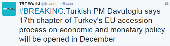 Garon Опубликовано 29 ноября, 2015 Опубликовано 29 ноября, 2015 Давутоглу заявил о начале процесса вступления Турции в ЕС по экон. и монетарной политике. ----------