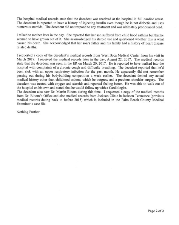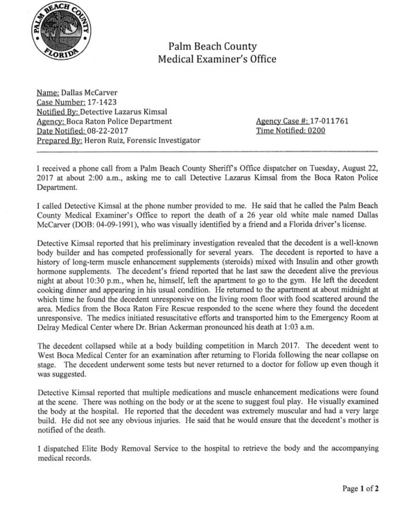 Garon Опубликовано 28 ноября, 2017 Опубликовано 28 ноября, 2017 Энтони Роберт получил доступ к отчету о вскрытии Далласа и опубликовал его для публики. Во время вскрытия Даллас имел: Увеличенная печень и почки Нефросклероз (закаленная печень) Тяжелые легкие (без слизи) Папиллярная карцинома щитовидной железы. Согласно сводке Энтони Робертса, история болезни Далласа включает в себя проблемы с холестерином (высокий уровень ЛПНП / низкий уровень ЛПВП), хронический кашель и одышку (он признался, что попал в больницу после развала в Арнольдской Австралии, и не мог даже вспомнить, что он исчезает), а также астму детства. Его уровень тестостерона находился в пределах нормы в момент смерти. Также присутствовали метаболиты Trenbolone. «Скрининг дополнительных стероидов был отрицательным, хотя он испытывал положительный результат на метаболиты кофеина и марихуаны (ни один из которых не упоминается как способствующие ему факторы). Никаких других рекреационных наркотиков или наркотиков не было. Также отмечена (но ни одна из них не была опробована или не указана в качестве фактора, способствующего смерти Далласа) была предыдущей историей использования ХГЧ и инсулина.