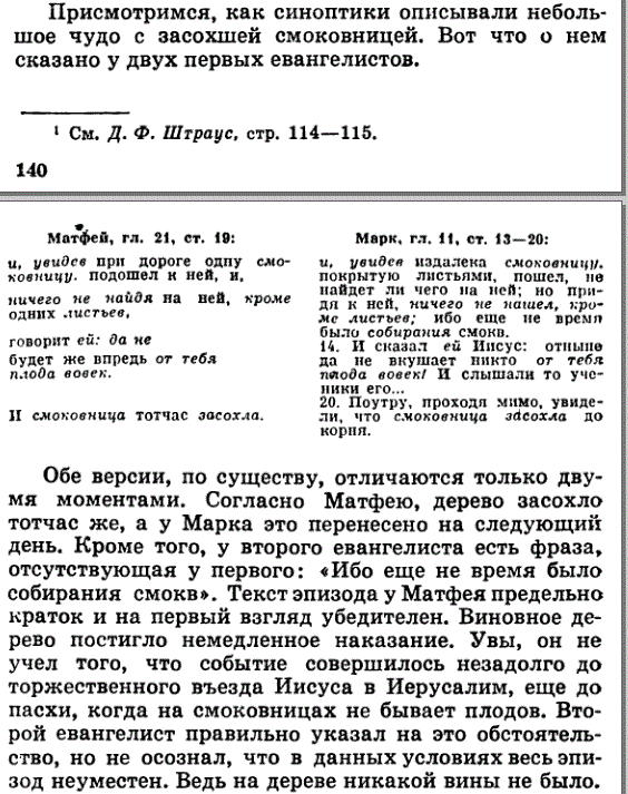 MaJ0r Опубликовано 22 апреля, 2017 Опубликовано 22 апреля, 2017 Да там похоже изначально была повинна, что плодов не принесла. Ну образно. А уже в последующих редакциях этого сюжета было подмечено, что в это время года плодов и не бывает, и другой евангелист уже даже добавил, что не время еще. Этим самым перечеркнув всю мораль байки. Да и запутались в показаниях. У одного засохла тотчас же, у другого - на следующее утро недавно спросили у меня что это такое смоковница - ответил что дерево, но что за дерево вспомнить не смог. Думаю надо погуглить, прав или ошибся. Наткнулся на библейскую историю. Прочитав по диагонали, вообще не понял ее, такой запутанный квест - подумал проще закрыть страницу, чем разобраться в вышеописанных хитросплетениях, т.к. если дерево не может плодоносить в не сезон, чего от него можно хотеть и чем оно виновато?