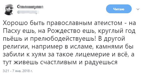 MaJ0r Опубліковано: 8 січня 2018 Опубліковано: 8 січня 2018 Вот шо забавно - с одной стороны я считаю шо попы мацковского патриархата - казлы, ну там неотпевание и всё такое, с другой - понимаю шо то хуйня шо это хуйня, шо мп шо уп, и народ, блеать, будет радостно перебегать от патриархата к патриархату вместо того шоб послать попов нахер и жить цивилизованно. не пошлют, в том то и дело. Просто МП еще и козни строит свои кагебистские ) Помню раньше мне рассказывали, что типа МП это тру, а КП это отстой, я хоть и крещенный не понимал почему, т.к. вроде как логично что с распадом совка одни захотели сделать свой блэкджек с шлюхами, а вторые не хотели отдавать власть, а мне с братвой сходить на Пасху, раз в год в церковь, было без разницы, чей патриархат, православная же и ладно. А какие-то шибко верующие помню советовали во Львове в костелы не заходить, а то бес попутает ))