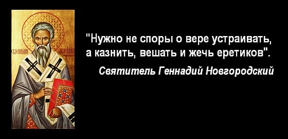 andreyyy Опубликовано 22 сентября, 2019 Опубликовано 22 сентября, 2019 Архиепи́скоп Генна́дий (в схиме — Галактион, предположительное прозвище (фамилия) — Гонзов; ок. 1410, Москва — 4 декабря 1505) — епископ Русской Церкви; архиепископ Новгородский; создатель первой полной переводной Библии в России, автор посланий. Почитается в лике святых как святитель, память совершается (по юлианскому календарю): 10 февраля (Собор святителей Новгородских), 4 (17) декабря, в 3-ю неделю по Пятидесятнице (Собор Новгородских святых), в воскресенье перед 26 августа (Собор Московских святых), в субботу между 31 октября и 6 ноября (Собор Карельских святых). Вместе с Иосифом Волоцким вёл борьбу против ереси жидовствующих, пользовавшейся до начала XVI века покровительством великокняжеского двора. Геннадий, настаивая на казни еретиков, писал в 1490 году московскому митрополиту Зосиме: «Смотри, франки по своей вере какую крепость держат! Сказывал мне при проезде через Новгород посол цесарский про шпанского короля, как он свою землю очистил, и я с тех речей и список тебе послал». Геннадий советовал митрополиту Зосиме поставить деятельность «шпанского короля» Фердинанда и испанских инквизиторов в пример Ивану III. После осуждения и анафемы им на Поместном соборе 1490, еретиков били кнутом, а затем отослали к новгородскому епископу. Геннадий устроил еретикам позорный въезд в Новгород. За 40 километров от города их посадили в шутовской одежде на коней «хребтом к глазам конским», то есть задом наперед, на головы им надели берестяные шлемы с надписью «Се есть сатанино воинство» и в таком виде возили по городу. В заключение на их головах были сожжены берестяные шлемы. Некоторых еретиков, как рассказывает летопись, по требованию Геннадия сожгли на Духовском поле, а других он послал в заточение. 3 февраля 2016 года решением Архиерейского собора Русской православной церкви был канонизирован для общецерковного почитания в числе других подвижников, которые почитались но не были прославлены общецерковно[1].