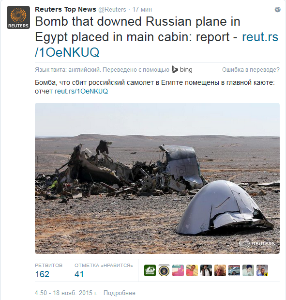 Garon Опубликовано 18 ноября, 2015 Опубликовано 18 ноября, 2015 Новая версия - бомба в салоне, а не в багаже.