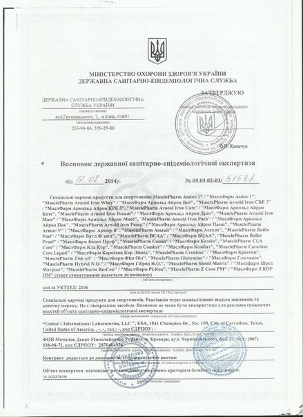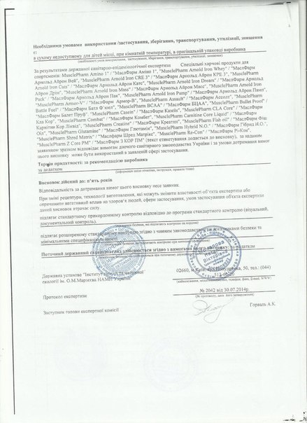 IGORSNDP Опубликовано 17 ноября, 2015 Опубликовано 17 ноября, 2015 ОТПРАВКА НАЛОЖЕННЫМ ПЛАТЕЖОМ БЕЗ ПРЕДОПЛАТЫ! На фото сертификаты качества. Цена: 1830 грн обычная цена у нас в городе 1900-2100 грн Дозировка В 250 мл воды или охлаждённого обезжиренного молока (содержание жиров 1,5%) размешать 2 ? столовые ложки порошка с горкой (25 г) Рекомендация по применению: Принимайте 100% Whey Isolate по потребности до 4-х порций в день. Рекомендуется принимать перед занятием спортом либо соревнованием, непосредственно после тренировки и перед отходом ко сну. Питательная ценность на 100 г порошка: 379 ккал/ 1611 кДж 91,0 г (96,5 г в сухой массе) белков 0,0 г углеводов 1,7 г жиров Фракции белка на 100 г порошка: 68-75% Бета-лактоглобулин 19-25% Альфа-лактальбумин 2-3% Bovine Serum Albumin (BSA) 2-3% Иммуноглобулин 0,5-1,5% Гликомакропептиды (GMP) 0,05-0,2% Лактоферрин (LF) 0,05-0,2% Лактопериоксидаза (LP) 0,1% Лизозим Незаменимые аминокислоты на 100 г порошка: 5400 мг Изолейцин (ВСАА) 11900 мг Лейцин (BCAA) 11100 мг Лизин 5500 мг Валин (BCAA) 3500 мг Фенилаланин 4400 мг Треонин 2300 мг Метионин 2700 мг Триптофан Условнозаменимые аминокислоты на 100 г порошка: 2200 мг Гистидин 3000 мг Цистеин Прочие аминокислоты на 100 г порошка: 16500 мг Глютамин 11100 мг Аспарагиновая кислота 2300 мг Аргинин 4400 мг Пролин 2700 мг Серин 4700 мг Аланин 1600 мг Глицин 3500 мг Тирозин Минеральные вещества на 100 г порошка: (*рекомендуемая дневная доза) 125 мг Кальций (15%)* 25 мг Магний (8,3%)* 95 мг Фосфор (12%)* 2 мг Железо (13,8%)* Витамины на 100 г порошка: (*рекомендуемая дневная доза) 100 мкг Витамин A (12,5%)* 2,0 мг Витамин C (3,4%)* 8 мкг Витамин D (160%)* Состав 100% изолят сывороточного протеина.