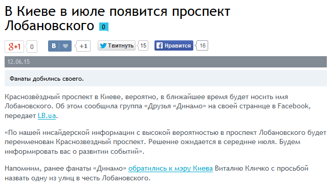 inimak Опубликовано 28 мая, 2015 Опубликовано 28 мая, 2015 Ну, судя по всему, радовались далеко не все: КОНОПЛЯНКА ВЫСТУПИЛ С ЖЕСТКОЙ КРИТИКОЙ ПОРАЖЕНИЯ «ДНЕПРА» http://u-news24.com/archives/8740