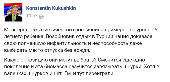 MrGreenZ Опубликовано 3 июля, 2016 Опубликовано 3 июля, 2016 Вот в плане отдыха в Турции я не согласен. Они ведь не ездили, ибо был запрет, а не того, что патриоты великие. Я на 100% уверен, не будь запрета, летали бы только так. Так само как и в крыс от патриотизма ездить они не начали.