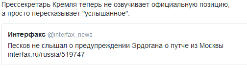 templar Опубликовано 21 июля, 2016 Опубликовано 21 июля, 2016 Иранские СМИ заявляют, что Минобороны России спасло Эрдогана Россия предупредила президента Турции Реджепа Эрдогана о готовящемся военном перевороте за несколько часов до его начала 20 июля 2016, 21:33 depo.ua со ссылкой на иранское агентство Fars. Источники пояснили, что национальная разведка Турции получила предупреждение от Минобороны России о подготовке военного переворота. По словам дипломатов, находящаяся в регионе российская армия перехватила переговоры военных и раскодировала радиосообщения, в которых говорилось о готовности турецкой армии начать переворот против власти страны в Анкаре. Отмечается, что во время переговоров был дан приказ нескольким военным вертолетам направиться к гостинице Эрдогана в Мармарисе с целью его ареста или ликвидации. Дипломаты не смогли сообщить, откуда именно Россия смогла перехватить сигнал, но отметили, что имеют данные о том, что на авиабазе Хмеймим в Сирии, где находятся ВКС России, есть системы, которые способны к перехвату подобных сигналов. Высокопоставленные чиновники в Анкаре, в том числе и в армии страны, подтвердили, что национальная разведка проинформировала их о подготовке военного переворота примерно за пять часов до его начала. перехватила и раскодировала... :popcorm1: Президент Ердоган оголосив про введення надзвичайного стану строком на три місяці відповідно до статті 120-ї Конституції з метою якнайшвидшого усунення всіх чинників терористичної організації, яка здійснила спробу держперевороту