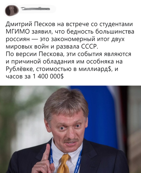 Дагот Опубліковано: 5 грудня 2018 Опубліковано: 5 грудня 2018 Где-то с 2016-го года ходят слухи шо это тело немношко нездорово. Надеюсь этот гнус скоро отправится на концерт кобздона. "А что это с Сурковым?": фото осунувшегося помощника Путина с тростью шокировало сеть 12:57, 05 декабря 2018 ПОЛИТИКА 4733 0 В сети поползли слухи о плохом состоянии здоровья Суркова - помощника Путина. Сурков появился на фото с тростью В социальных сетях появился снимок помощника президента России Владислава Суркова, опирающегося на трость. Фотографию опубликовал Telegram "Говорит Долгов". "А что это с Сурковым?", - коротко подписали в канале снимок. При этом не уточняется, где, когда и при каких обстоятельствах был сделан этот снимок помощника Путина. фото t.me/superdolgov Ранее издание КоммерсантЪ опубликовало фото помощника президента России Владислава Суркова, на которых "серый кардинал" Кремля выглядит осунувшимся и сильно похудевшим. В соцсетях пишут, что помощник Путина выглядит нездоровым, некоторые говорят, что он умирает от рака. Подробности читайте на УНИАН: https://www.unian.net/politics/1036...hchni...rovalo-set.html