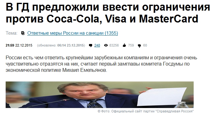 Арис Опубликовано 24 декабря, 2015 Опубликовано 24 декабря, 2015 Это шедеврально и коменты ваты: МОСКВА, 24 дек — РИА Новости. Президент России Владимир Путин призвал правительство сдерживать спекулятивное повышение цен в РФ всеми возможными рыночными инструментами. http://ria.ru/economy/20151224/1348097378.html © РИА Новости. Сергей Гунеев | Купить иллюстрацию Путин: правительству надо вернуть экономику на устойчивые темпы роста"Сегодня необоснованное, прямо скажем, спекулятивное повышение стоимости продуктов, товаров, услуг приводит к снижению жизненного уровня людей. Нужно использовать все имеющиеся рыночные инструменты для сдерживания роста цен, расширить долю недорогих, но качественных отечественных товаров", — сказал Путин, выступая на совещании с членами правительства в четверг.