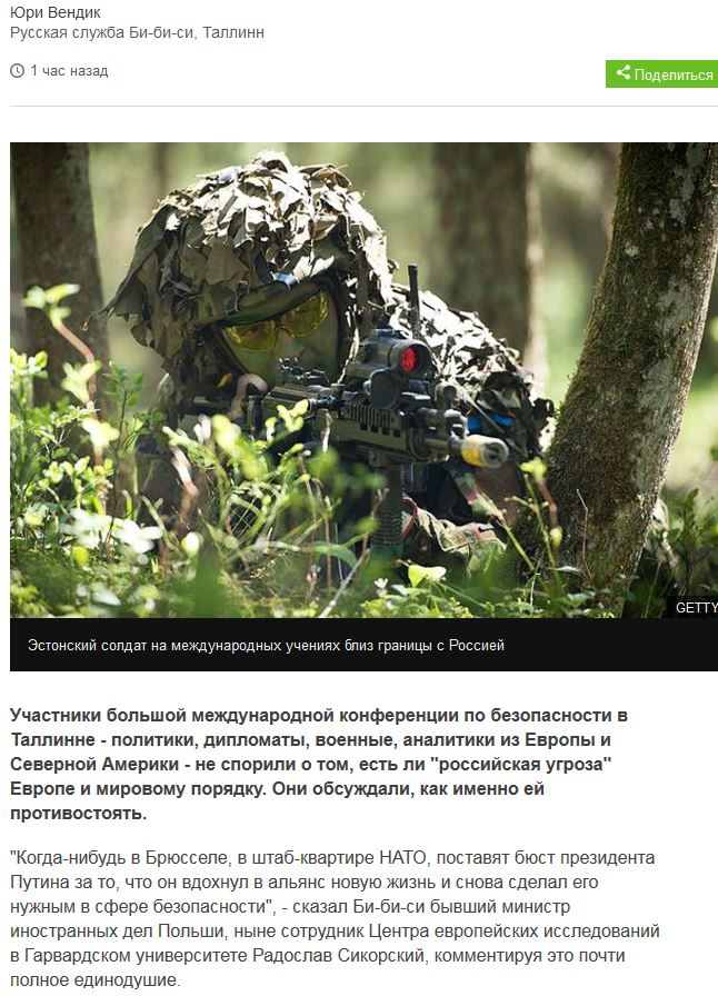 Garon Опубликовано 16 мая, 2016 Опубликовано 16 мая, 2016 "Опросы показывают, что немцев не впечатляет российская пропаганда", - мимоходом сообщила немецкий аналитик Констанция Штельценмюллер, рассказывая об отношении Германии к союзническому долгу и, в частности, об увеличении немецкого военного бюджета. На конференции много говорилось и об Украине, поскольку пусть нынешнее ухудшение отношение с Россией началось и не с Украины, но острая фаза последних двух лет была спровоцирована именно действиями России в отношении Украины - аннексией Крыма и поддержкой военного конфликта на Донбассе. "Цель России очевидна: убрать Крым из международной повестки, выждать время в надежде, что для всех это просто станет фактом жизни. Несмотря на постоянное отрицание со стороны России, российские регулярные войска остаются на Донбассе, и Москва продолжает снабжать сепаратистов на востоке Украины военным снаряжением и обучать их [...] Действия России в отношении Украины - это не просто агрессия. Они представляют угрозу праву соседних с Россией стран на самостоятельный политический выбор. [...] Идет время, появляются новые проблемы в области безопасности. Но мы не должны примириться с тем, что сделала Россия", - сказал министр обороны Швеции Петер Хультквист. http://www.bbc.com/russian/news/2016/05/16...linn_conference