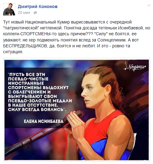 Дагот Опубліковано: 21 липня 2016 Опубліковано: 21 липня 2016 совершенно не понимаю. Если российские олимпийцы чисты, почему не предложить им допуск на Олимпиаду взамен на полный анализ крови, мочи и чего там еще надо? Типа: я чист, хочу бежать (или прыгать, или толкать), проверьте меня, я никогда не касался допинга? Так они не чисты , это доказано и никому не интересны плаксивые видосы )) Они наказаны . Если дать им эту "палочку-выручалочку " они только завалят Рио , специально , затягиванием со сдачей анализов и т.д. , а потом будут бить себя копытом в грудь - нас не услышали . Все это уже проходили и все предсказуемо . Свинособаки изворотливы , подлы и мстительны .