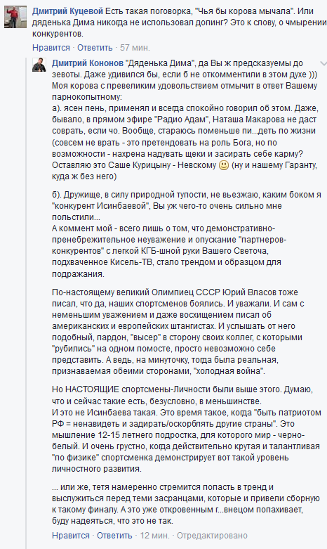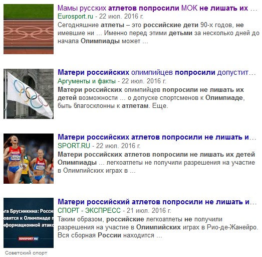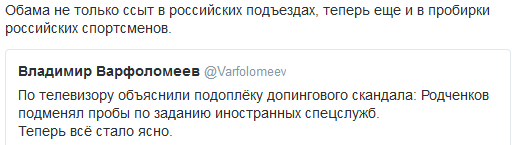 OlegRO Опубліковано: 24 липня 2016 Опубліковано: 24 липня 2016 газета The Mail on Sunday: По данным издания, от участия в соревнованиях будут отстранены все 387 российских спортсменов, включая 68 легкоатлетов, иск которых ранее в четверг, 21 июля, отклонил Спортивный арбитражный суд (CAS). Отдельным атлетам, однако, будет предоставлен шанс доказать, что они не являются частью так называемой «государственной программы» поощрения допинга. Им МОК разрешит выступить на Играх под нейтральным флагом. "Наши войска станут позади женщин и детей. Пусть они попробуют лишить нас Олимпиады в Рио" - В.В.Путин. из неопубликованного толково зачем власти дискредитируют интернет https://www.rbc.ru/opinions/politics/23/07/...a794763a48918e8
