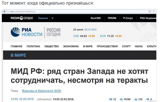 OlegRO Опубліковано: 26 липня 2016 Опубліковано: 26 липня 2016 я сегодня глянул их новости на первом в 12-00, содержание: франция, тыракты япония, убийства вада , олимпиада рио америка, выборы, включение репортера первого с протестов Филадельфии Украина заблокировала крестный ход БОЛЬШОЙ ТЕАТР в Лондоне - обкончались от гордости все франция тыракты ещё разок не верите? https://www.gamak.tv/pervyi_kanal/2016-07-26/12:00/ в болоте своих новостей нет, просто ссср камбек, ватка видимо даже не понимает как им срут в голову