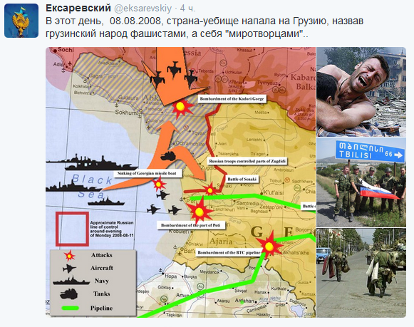 extremal Опубліковано: 8 серпня 2016 Опубліковано: 8 серпня 2016 В этот день я отдыхал с семьей и друзьями на Десне. С нами был грузин. Он работал и жил в Киеве. На всю жизнь запомнил его лицо когда ему позвонили и сказали что погиб его брат. А потом позвонили еще раз. Погиб второй брат. Путин- ты хуйло.