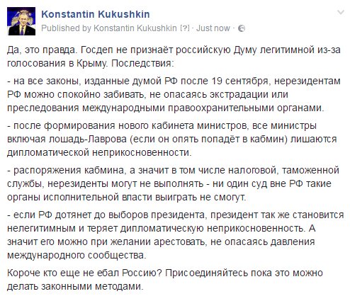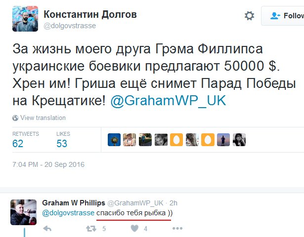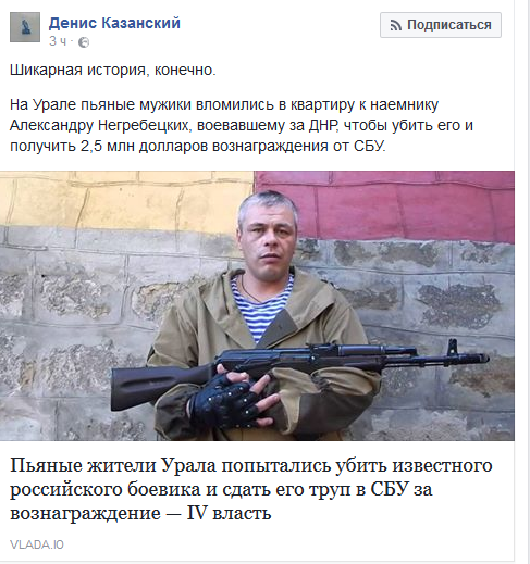 Каммерер Опубліковано: 21 вересня 2016 Опубліковано: 21 вересня 2016 https://vlada.io/news/pyanye-zhiteli-urala-...oznagrazhdenie/ порадовали комменты: Serj Sergiy За этого синяка 2,5 ляма долларов?Он сильно себя переоценил-при гипотетическом объявлении награды от Украины в сто штук зелени-через неделю его голова будет доставлена в Киев.. Отметка «Нравится» · Ответить · 29 · 1 ч Bogdan Gulak · Международный институт менеджмента МИМ-Киев Вот наверное поэтому он "и сам был на некоторое время помещен в СИЗО". Полицейские оценивали