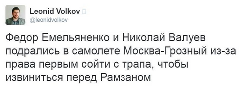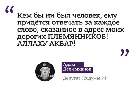 karlito78 Опубліковано: 6 жовтня 2016 Опубліковано: 6 жовтня 2016 Я одного так и не понял. Обезян говорят, что Федор оскорбил его племянников. Где оскорбление то было? говорить мужчине, что ему можно, что нельзя. у меня друг в росии, в подьезде с ним живет один из бывших близких Рамзана, на одном из его авто гоняет. он говорит - чечен нельзя нашими мерками мерить, они дикие, и живут еще ментально в веке так 15, плюс религия специфическая.