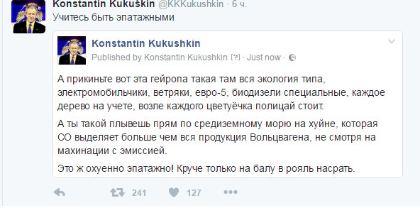 Donaldo Опубліковано: 23 жовтня 2016 Опубліковано: 23 жовтня 2016 как выглядит Кузнецов с МКС Так выглядит Кузнецов с МКС когда плывет по суше и заплывает на вершину вулкана) .... вроде и смеяться с больных грешно, но и удержаться трудно