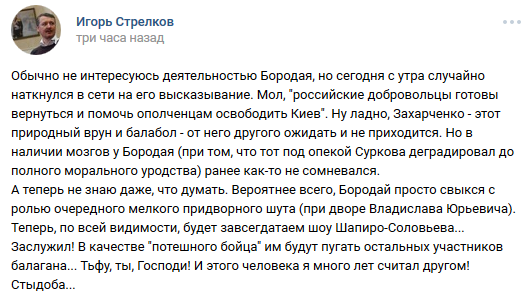 OlegRO Опубліковано: 31 жовтня 2016 Опубліковано: 31 жовтня 2016 Узнал я тут в прошедшую пятницу из российских СМИ о том, что Верховный суд в Австрии якобы оправдал иммигранта, изнасиловавшего мальчика в бассейне. Новость эта показалась мне подозрительной, и действительно: никого суд не оправдывал, дело было послано назад на доследование в суд первой инстанции по сугубо юридическим мотивам, сам преступник продолжает сидеть в тюрьме, а вся история выдумана Первым каналом, а потом подхвачена многочисленными российскими СМИ. Комментаторы также дали мне ссылку и на разоблачение от DW. Пост об этом я написал в прошедшую пятницу (за что получил 40 минусов к карме от доброжелателей). Каково же было мое удивление, когда только что я узнал следующее: Путин раскритиковал европейский опыт в области миграционной политики "Иммигрант изнасиловал ребенка в одной из европейских стран. Суд его оправдал по двум основаниям: он плохо говорит на языке страны пребывания и не понял, что мальчик, а это был мальчик, возражает. Это в голову не может прийти, что они творят там", — привел пример президент. Вот это действительно в голову не может прийти: Путин черпает информацию из той же помойки что и остальные 86% населения? Нет, правда, я не верил, что в Кремле действительно считали, что Грузия бомбардирует Цхинвали, что НАТО введет войска в Крым, что Прибалтийские страны планируют напасть на Россию. Я думал, что весь этот бред рассчитан исключительно на внутреннее потребление внутри страны. А если завтра наврут, что на Россию сброшена атомная бомба? У него же красная кнопка под рукой! Кажется, сбываются мои самые мрачные предположения об адекватности российского лидера.. Хотите узнать, как стряпаются пропагандистские сенсации в российских масс–медиа? Вот вам свеженький примерчик. Сначала – голые факты: В декабре прошлого года в одном из бассейнов в пригороде Вены произошёл вопиющий случай: 20–летний беженец из Ирака... далее https://politota.dirty.ru/kak-striapaetsia-...varevo-1217465/ ------------------------------- Ржут искандеры Градообразующий завод в Морозовке Всеволожского района сократит каждого четвертого работника. Говорить более конкретно о причинах, по которым его предприятие внезапно оказалось на грани сокращений, Джуманиязов отказался, сославшись на то, что знать конкретные цифры и данные журналисту ни к чему. - Лучше вам об этом не думать, - по-отечески посоветовал он. Нежелание углубляться в детали понятно, поскольку ФГУП "Имени Морозова", как следует из открытых источников, занимается производством твёрдого ракетного топлива. Притом, завод уникален в своём роде. Упомянутый директором "Воткинский завод" входит в состав корпорации "Московский институт теплотехники", выпускает в том числе стратегические ракеты "Тополь-М", "Искандер", как раз работающие на твёрдом топливе. Считается, что "Тополь-М" существует для ядерного сдерживания, то есть для создания угрозы нанесения ядерного удара по территории США, а "Искандер" предназначен для разрушения объектов инфраструктуры потенциального противника. подробнее ------------------------------- ПО СТОПАМ...: "...«Закон о гражданине Рейха» (нем. Reichsbürgergesetz) и «Закон об охране германской крови и германской чести» (нем. Gesetz zum Schutze des deutschen Blutes und der deutschen Ehre), провозглашённые по инициативе Адольфа Гитлера 15 сентября 1935 года на съезде Национал-социалистической партии в Нюрнбер