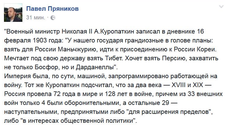 extremal Опубліковано: 26 листопада 2016 Опубліковано: 26 листопада 2016 silverknife 26 ноября 2016 | 00:42 Здравствуйте. Я — московский оккупант. Так сложилось исторически. Я оккупировал Сибирь. Там жили дикие народы, до которых никому не было дела. Мне тоже не было до них дела, но мне нужна была пушнина, чтобы торговать с Западом. Теперь вместо пушнины в Сибири добывают нефть, газ, алмазы и ещё кучу всего полезного для Сечина и Абрамовича, чтобы они могли покупать, что им хочется на Западе. До народов исторически населявших эту территорию мне как не было дела так и нет теперь — да и кто знает, в самом деле, эти народы? Это было интересно разве что в первые века оккупации, когда местные продавали мне своих женщин за калым. Я оккупировал Эстонию. Сначала я признал ее независимость, но потом я наплевал на нее, потому что договоры со мной не стоят и бумаги, на которой написаны. Немцы это хорошо знали, поэтому и сами наплевали на договор который мы подписали когда делили Восточную Европу. Я пришел в Эстонию, выселил десятки тысяч эстонцев к черту на кулички, а вместо них ввез русскоязычных «братишек» со всего Союза. Сейчас «братишки» пьют водку на развалинах советского старья, в то время как эстонцы запускают спутники с электрическим парусом и разрабатывают «Скайп». За это я называю их фашистами и мечтаю о том как вновь въеду в Таллинн на танке. Я оккупировал Украину. Собственно, я оккупировал ее несколько раз, вселяя туда все больше «братишек» и одновременно вымаривая местное население голодом. Когда меня попросили оттуда уйти, я снова ввез в Украину «казаков», «евразийцев», ряженых «белогвардейцев», чеченцев и бурят. Последних, кстати, я оккупировал еще раньше, истребив всех кто мне сопротивлялся, а ненависть оставшихся переключил на тех, кого раньше называл «братьями». Не правда ли, я могу быть очень хитрым и изобретательным, когда хочу развязать очередную войну? Я не оккупировал остров Сингапур. У меня до него не дошли руки и Сингапур заняли англичане. Зато я оккупировал полуостров Крым, со временем выселив тамошнее население, а тех, кто сумел вернуться, теперь обвиняю в экстремизме. Англичане из Сингапура ушли, но научили местных, как сделать свой остров одним из мировых финансовых центров, с развитой наукой и промышленностью, почти лишенным коррупции. А в Крыму почему-то получилась только дотационная дыра, населенная потомками «братишек», живущими прошлым и возглавляемыми бандитами. И ещё знаете что? Меня достало извиняться за то, что я оккупант. Хотя стоп, я же никогда и не извинялся. И никогда не стыдился. Я горжусь тем, что я оккупант. Я горжусь каждой изнасилованной женщиной, умершим от голода ребенком, каждым ссыльным, расстрелянным, сгноенным в лагерях, горжусь тем, что поломал судьбу миллионам людей, за то, что они не хотели жить по-моему. Вы хотите, чтобы я извинялся за чужих, когда мне плевать даже на «своих»? Это я резал носы и уши новгородцам, выкалывал им глаза и топил в Волхове, я выселял псковичей с родных мест, вселяя вместо них «братишек» из-под Москвы. Это я травил газами крестьян Тамбовщины. Это я морил голодом Кубань, выселяя казаков целыми станицами, а на их место вселял «братишек»-красноармейцев. Ныне потомки тех «братишек» надевают папахи и называют себя «казаками». Это я выгонял солдат на Тоцкий полигон, чтобы проверить на них действие радиа