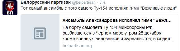chuguniy Опубліковано: 25 грудня 2016 Опубліковано: 25 грудня 2016 Первыми на месте события оказались съемочные группы телеканалов "Первый" и "Звезда". (с) Не помедливши с ответом, Тёркин сдачу подаёт: "Не горюй! У немца этот Не последний самолёт!" (с) Твардовский.