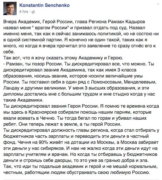brutal62 Опубликовано 15 января, 2016 Опубликовано 15 января, 2016 (изменено) на русском с 25-й сек. https://www.youtube.com/watch?v=t5m7HwDzsH0 [=52563:сенчен.] да подьехали к этому депутату... поговорили за жизнь... его поганую.... и он извинился- типа был не прав.. понять и пГостить... https://meduza.io/feature/2016/01/15/kadyro...eputata-korotko Изменено 15 января, 2016 пользователем brutal62