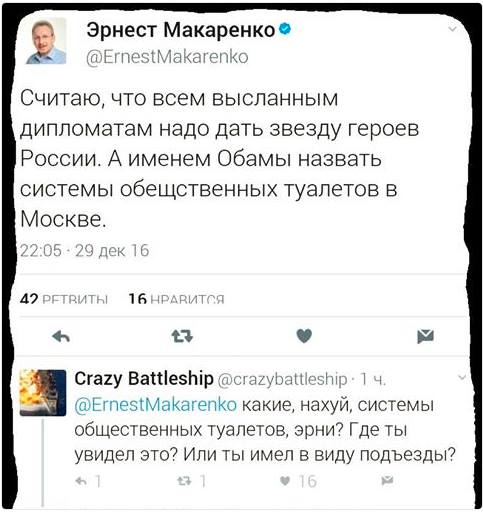 Дагот Опубліковано: 30 грудня 2016 Опубліковано: 30 грудня 2016 В Израиле до полусмерти напился чрезвычайный и полномочный посол РФ. Пытаются откачать...(а оце дарма, най сконає) . Чрезвычайному и Полномочному Послу России в Израиле Александру Шеину стало плохо в ресторане после изрядного новогоднего застолья. Посол России в Израиле Александр Шеин был госпитализирован в тель-авивском ресторане, сообщает местное издание Ynet News. Шеин скорой помощью был доставлен в отделение интенсивной терапии в больницу «Ихилов» в Тель-Авиве. По информации свидетелей, Александр Шеин был госпитализирован медиками после изрядно выпитого алкоголя в буйной компании россиян. Александр Шеин является Чрезвычайным и Полномочным Послом России в Израиле с июля 2015 года. До этого он представлял интересы России в Тунисе, Иордании и Ираке.