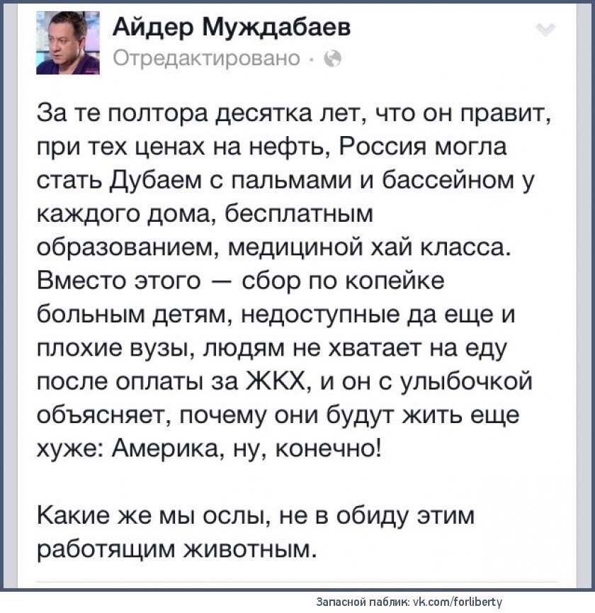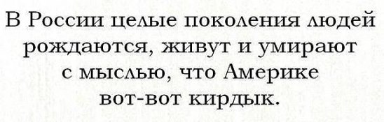 extremal Опубліковано: 15 січня 2017 Опубліковано: 15 січня 2017 Стілфактрці вирішують долю світу. Дебіли бля)) renepjd Вчера Нахрена мы тащили с400 в Сирию, если Израиль спокойно бомбит? Бронкс Сегодня, 10:34 Чтобы прикрыть своих от горячих американских голов на случай эскалации. А запрещать летать Израилю, Нато и т.д., под угрозой уничтожения, нельзя, ибо то это практически объявление им войны. ну да, логично Но почему никто не боится? Как наш бомбардировщик сбили, так и надо чей то сбить Они опасаются. Но видимо есть какие-то договоренности о разграничении полетов. Сбивать в ответку, это значит пойти на поводу у США. И опять же это практически 100% гарантия полноценной войны с Израилем или Турцией/НАТО. А это уже перебор. ну и что? За сколько дней мы победим Израиль и Турцию? Ни за сколько. Это будет начало 3 мировой. не будет Запад зассыт. А если не зассыт, то мы уже их били Не смеши . Не хватит народа . у Турции и Израиля? Нах народ страчивать?? Искандер, калибры порешают у нас их очень мало, и они очень дорогие, практически всё что ты видишь по Р24 это и есть все наши калибры и искандеры. Они разве не по людям стреляют ? Положить еще 20млн здоровых мужиков и что будет ? тогда пойдем в рукопашную лучше в рюмочную...;) с турками и евреями я теперь явно в рюмочную не пойду война она такая После следующей войны уже не Америку придется догонять , а Кампучию )) Да и не хватит денег обеспечивать красивую жизнь побежденным странам )) это уже второй вопрос