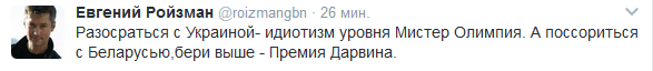 OlegRO Опубліковано: 16 лютого 2017 Опубліковано: 16 лютого 2017 об указании Кремля государственным СМИ перестать хвалить Трампа https://tvrain.ru/news/bloomberg-427862/ #белофашисты госкомпания «Белоруснефть» приобрела около 600 тысяч баррелей нефти у Национальной иранской нефтяной компании (NIOC). Почти 80% россиян выступили за возвращение визового режима с Белоруссией Сбежавший в Украину депутат Вороненков дал интервью изданию "Цензор.НЕТ", где сравнил ситуацию в России с нацистской Германией. Гражданка Германии с мужем-коммунистом пять лет в Госдуме создают фашистский режим, а потом бегут от фашизма в Украину. Кафка, всё, тормози.