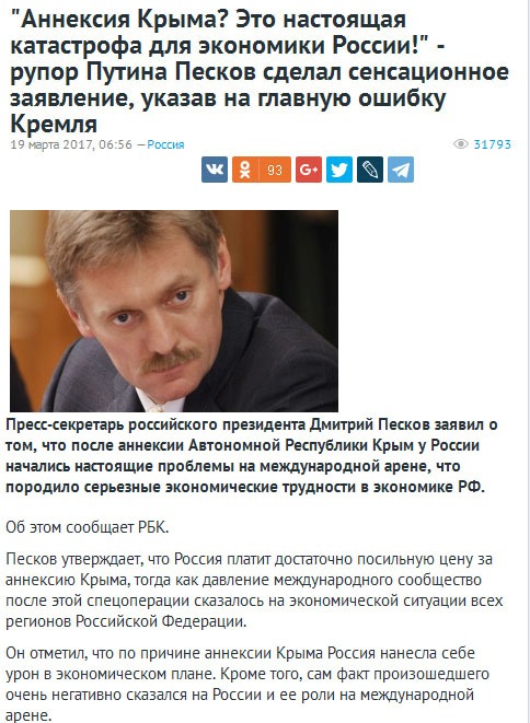Дагот Опубліковано: 20 березня 2017 Опубліковано: 20 березня 2017 Саша Сотник Песков заявил, что все решения по Крыму принимал только Путин. И никто больше. Один, без ансамбля. Надо ли понимать, что "братва" склоняется к решению, направленному на самосохранение системы? Ведь Путин ни с кем так и не договорился, никакие санкции при нем сняты не будут, и не пора ли его сливать? И первым шагом к такому сливу может быть признание "единоначалия": "Это все - он. Только он, и никто больше. Мы просто подчинялись, а что мы могли сделать?.. Он - начальник, всенародно избранный, а мы - никто... Это он придумал, приказал и осуществил - ему и нести ответственность..." И почему Путин вчера так и не появился на Воробьёвых горах? Вчера, судя по сообщениям официального Кремлин.ру, Путин был доступен только по телефону: разговаривал с Назарбаевым (новость опубликована в 12.20 Мск.). Где он "отмечал" третью годовщину своего "гераклического подвига"? И где сейчас наш "Сцарь-гарантушка"? Не дает ответа... Подождем...
