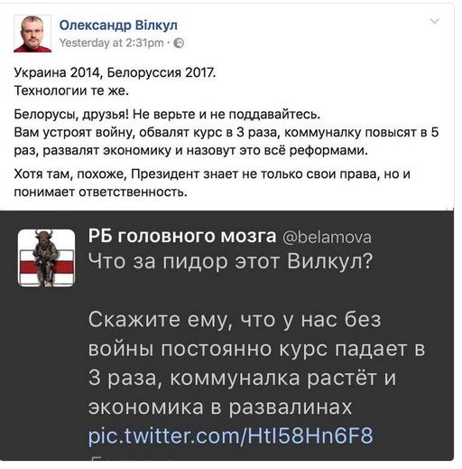 Лео Опубліковано: 28 березня 2017 Опубліковано: 28 березня 2017 Допа тоже полез посоветовать беларусам и откушал говна с лопаты со всех трёх сторон Да и вообще: Українець, пам'ятай. Даючи непрошені поради білорусам, як їм вирішувати проблеми в їх країні, ти поводишся, як кацап.