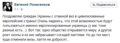 OlegRO Опубліковано: 7 квітня 2017 Опубліковано: 7 квітня 2017 "смотрю Киселёва, чтобы поржать" (и это оправдание можете своей бабушке рассказывать — нормальны люди не смотрят это "чтобы поржать", т.к. это глубоко не смешно). При этом эти итоговые новостные программы так или иначе формируют взгляд на совеременный мир у большого процента населения современной России, и именно такой взгляд на вещи они считают истинно верным (каждый с какими–то своими допущениями). Тем интереснее взглянуть на то, куда постепенно катится этот гребень мнений — куда так или иначе пытаются склонить то самое "голосующее за Путина" большинство. Приведу цитатут из поста на FB: Мама смотрит "Воскресное время" с Валерием Фадеевым. Показывают сюжет о зловещей семье Ротшильдов, которые ещё в XIX веке разжигали войны, а ныне выкармливают и США, и ИГИЛ. Как версия — но вполне себе версия, даже без критики, — говорится о тайном всемирном правительстве. Далее ещё круче. О Ротшильдах снято уже немало документальных фильмов и даже художественных. Фрагмент одного из них воспроизводится в телепередаче. Он снят ещё в 1940 году в Германии. Ещё раз. На Первом канале. Воспроизводится фрагмент фильма. Производства Третьего рейха. И это не сравнительно безвинный фильм об Олимпиаде–1936. Это фильм, непосредственно отражающий нацистский антисемитизм. "Создание фильма курировал сам министр пропаганды Йозеф Геббельс!" — произносит г–н Фадеев с такой интонацией, будто восхищён масштабом ответственной персоны. Во всяком случае, не звучит ни единого слова осуждения в адрес рейхсминистра. Ещё раз. На Первом канале. В качестве документального. Воспроизводится пропагандистский продукт. Созданный ведомством. Йозефа Геббельса. На Первом канале показывают, как одна омерзительная рожа объясняет другой, что под нами–де уже и Лондон, и Вена, а если соединить все подмятые нами города и добавить Иерусалим — смотрите сюда — точь–в–точь Звезда Давида. Ещё раз. На Первом канале из всей реальной или фальшивой документалистики о Ротшильдах. Предпочитают показать фрагмент гитлеровской пропаганды. Согласно которому звезда Давида выражает тайный заговор. Омерзительных морд всемирного еврейства. Все комментарии г–на Фадеева к данному ролику ограничиваются тем, что, понятно, 1940 год, война, поэтому Германия пропагандирует против военных соперников [а до войны Геббельс, надо полагать, лапочкой был и раздавал еврейским детям конфеты].Затем добавляется, что своего венского сынка Ротшильды у нацистов выкупили, и он избежал участи других евреев (кадр из концлагеря), но семейство о таком эпизоде вспоминать не любит. И только. Ещё раз. На Первом канале. В эфире главной аналитической программы. Демонстрируется продукт геббельсовской пропаганды. О всемирном еврейском заговоре. О мерзости еврейства. О расшифровке Звезды Давида в духе сего мерзкого заговора. Без купюр. Без опровержений. Без единого слова о невинности сгинувших в концлагерях евреев. Без мало–мальских критических комментариев вообще. Как образцовый пример документалистики. Если ЭТО не фашизм, то что тогда фашизм? 6 миллионов евреев лишились жизни лишь из–за того, что горстка неадекватных истероидов верила в теорию заговора. 27 миллионов советских граждан отдали жизни за то, чтобы этой человеконенавистнической истерии больше никогда не звучало в э