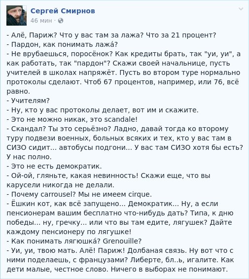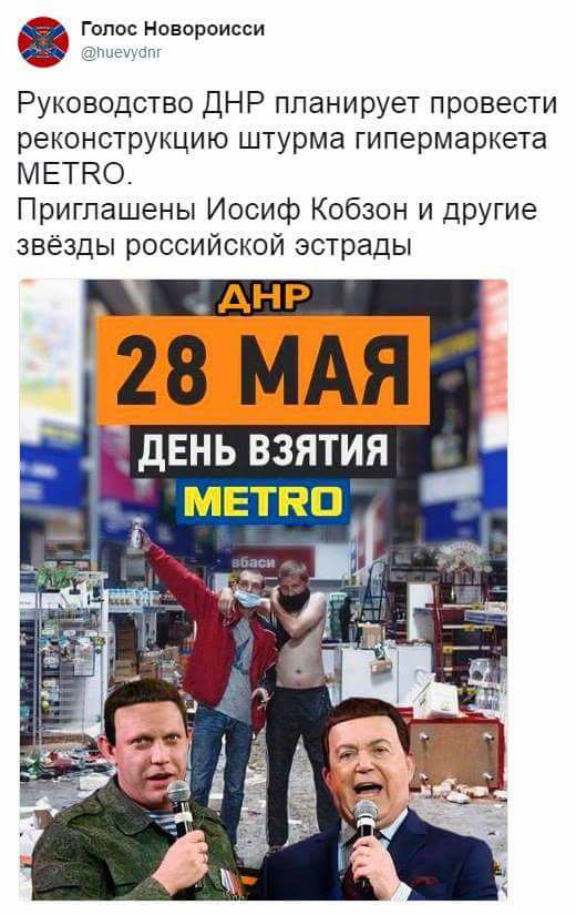 OlegRO Опубліковано: 25 квітня 2017 Опубліковано: 25 квітня 2017 В МИД РФ больше не будет уполномоченного по правам человека деньпобеды головного мозга а диды ваще в бараках жили В Ижевске КАМАЗ провалился под землю. ИГИЛ уже взял на себя ответственность Нелегко было превратить могучую Россию в страну-изгоя. Но для Путина нет ничего невозможного.