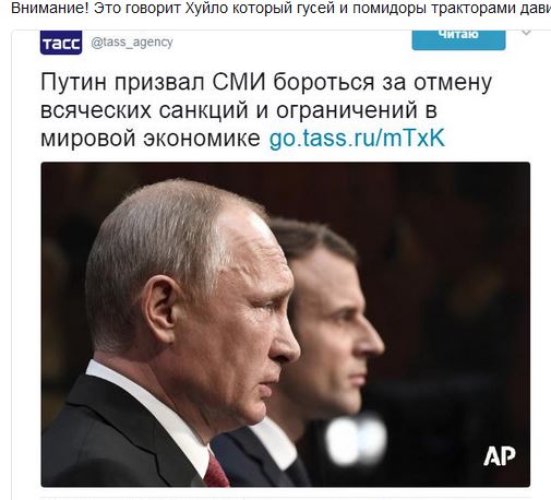 Axwell Опубліковано: 29 травня 2017 Опубліковано: 29 травня 2017 (змінено) https://lentach.media/articles/putin-i-makr...lis-v-versale-1 Лентач 1 Std · Президент Франции Макрон, прям при Путине назвал рашутудей пропагандистами, лжецами и сказал что не считает их журналистами. Владимир Путин промолчал. Путин во Франции рассказывает, что Анна Ярославна - русская. 13:00 https://www.youtube.com/watch?time_continue=833&v=K0c_J-sH_es Змінено 29 травня 2017 користувачем Axwell
